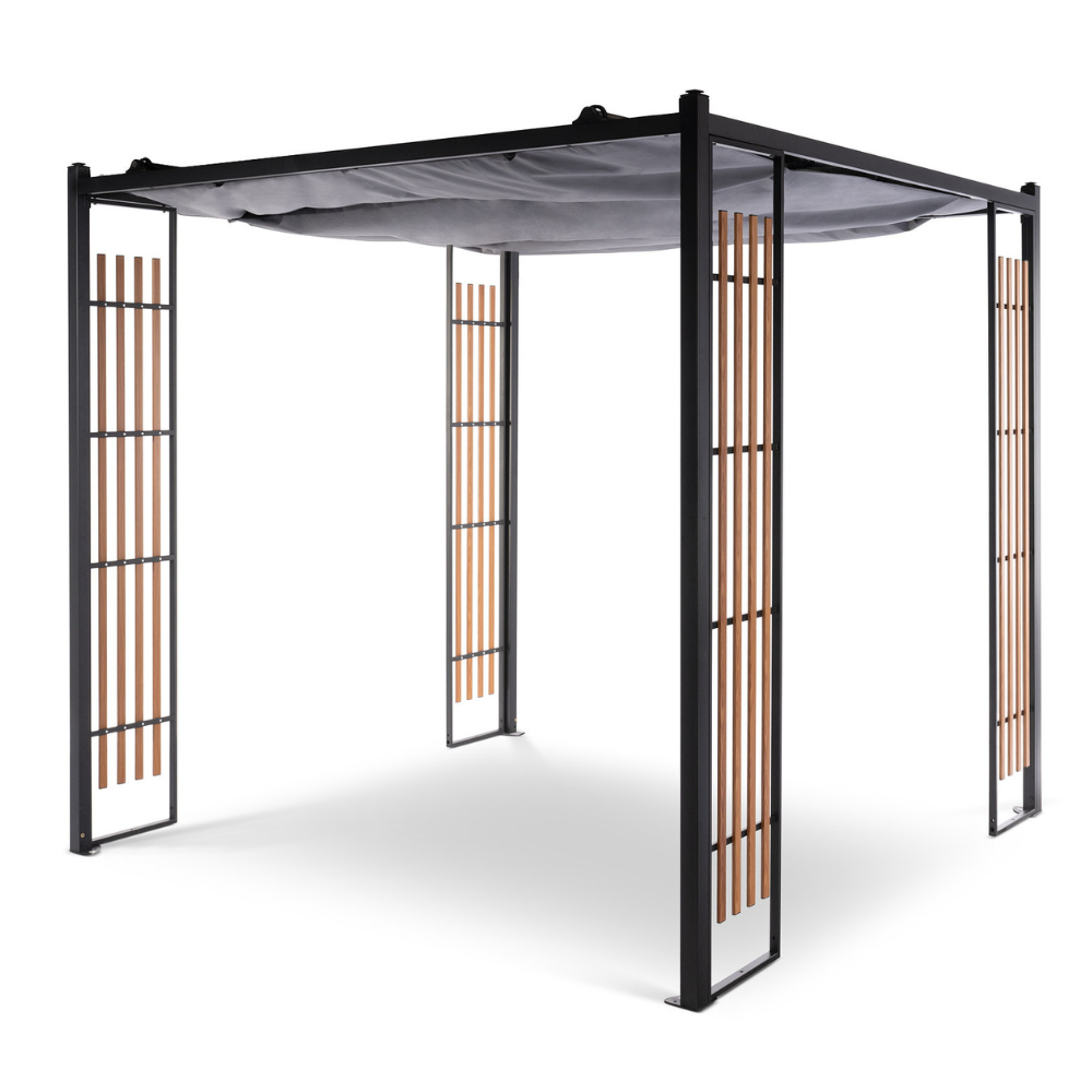 Meet MOD, a fresh take on the classic oversized pergola. It’s chill, adaptable, and fits right into any backyard, big or small. Built with a premium powder-coated steel frame, MOD brings year-round beauty to your outdoor space. Plus, each MOD comes with a cool adjustable sunshade canopy made from 100% solution-dyed Olefin fabric. It’s not just stylish – it’s water-resistant, fade-resistant, and gives you UV protection all year long. This Pergola kit also comes with 4 powder coated steel panels decorated with heat transferred faux wood-grain finish. Each panel is interchangeable to fit with any sides of the pergola post, providing both style and stability that infuse a stunning contemporary design.